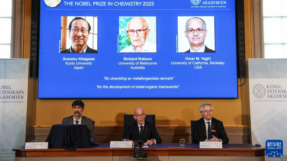 瑞典皇家科学院8日宣布,将2025年诺贝尔化学奖授予北川进、理查德·罗布森和奥马尔·M·亚吉三名科学家,以表彰他们在金属有机框架开发方面所作出的贡献。