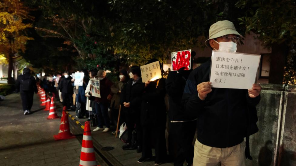 针对日本首相高市早苗近期发表涉台错误言论,且时至今日仍不思悔改,日本民众28日晚在位于东京的首相官邸前再度举行抗议集会,要求高市撤回相关言论。