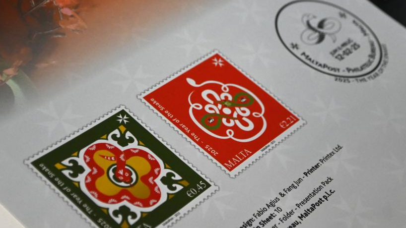 马耳他邮政总局12日在首都瓦莱塔举行蛇年生肖邮票发行仪式。这套蛇年生肖邮票共两枚,分别由马耳他邮票设计师法比奥·阿吉乌斯和中国邮票设计师方军完成。
