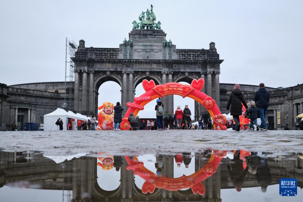 当日,为庆祝即将到来的中国农历蛇年,“中国春节游园庙会”活动在比利时布鲁塞尔的五十年宫公园内举行。