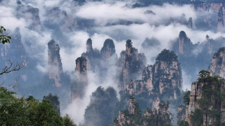 68岁的韩国游客金钟九从未想到自己在年近古稀之际,还能登上张家界位于峭壁之上的天门洞顶。对他来说,张家界是一个“来了还想来”的地方。