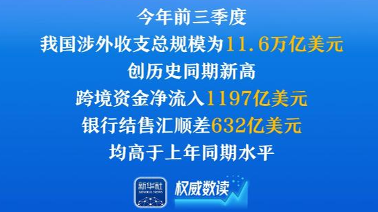 创历史同期新高!前三季度我国涉外收支总规模11.6万亿美元