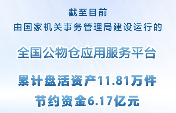 记者从1月6日至7日在京举行的全国机关事务工作会议上了解到,截至目前,由国家机关事务管理局建设运行的全国公物仓应用服务平台已覆盖80多家中央部门及其所属1.8万余家单位,接入14个省级公物仓,累计盘活资产11.81万件,节约资金6.17亿元。