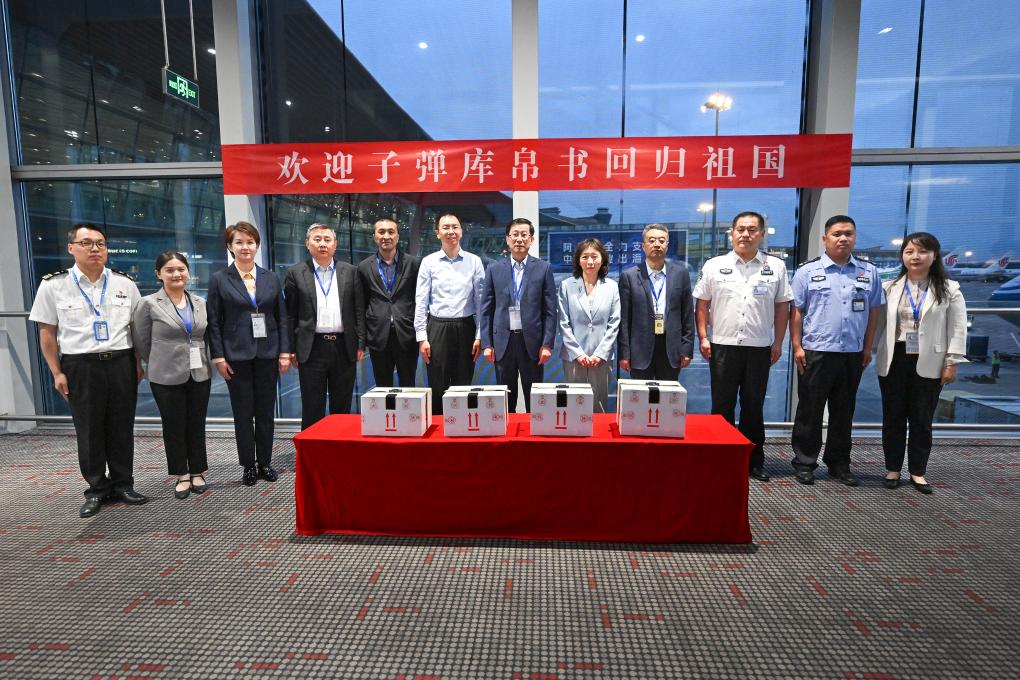 飞机滑动间,坐在机舱内的国家文物局子弹库帛书接收工作组一边“感到如释重负”,一边密切关注着旁边座位上的几个箱子。