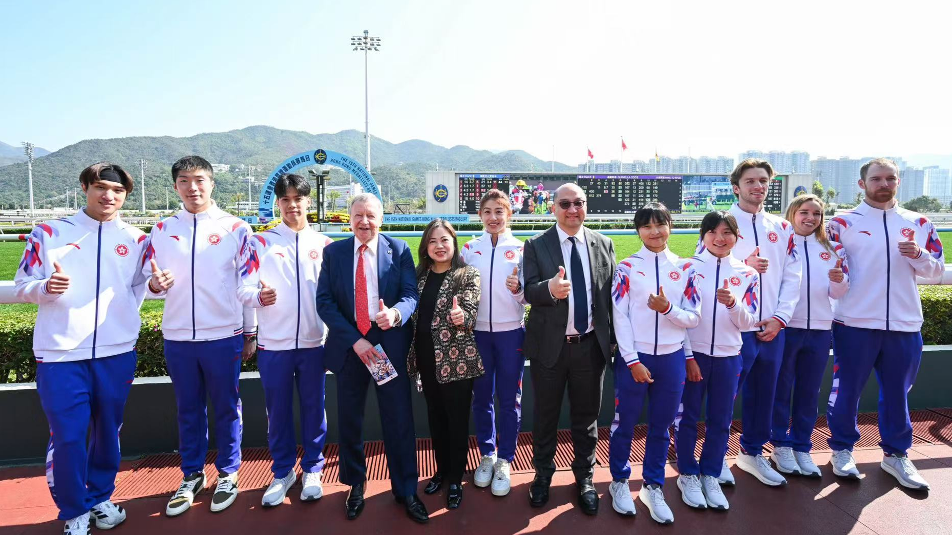 香港赛马会18日在沙田马场举办“十五运会香港奖牌运动员赛马日”活动,表彰香港队在首次由粤港澳三地共同承办的第十五届全国运动会中勇夺9金2银8铜,创下香港队在全运会上的最佳战绩。