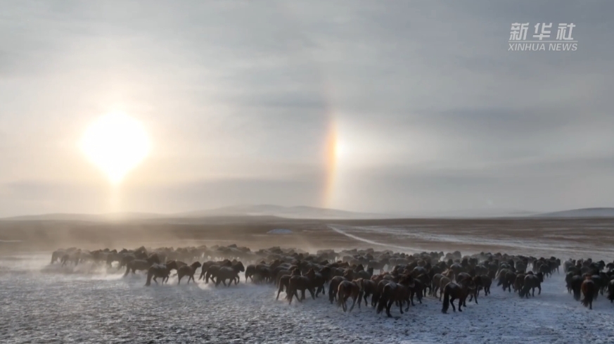冬雪至,万物披上银装,天地间一片静谧祥和。内蒙古东乌珠穆沁旗草原上白雪皑皑、寒风凛冽。牧民们为了能让牛羊安全过冬,早已备足了饲草料。雪地上咀嚼饲草的牛羊、缓慢流淌的河水、蒙古包上升起的炊烟、牧民们脸上的笑容,书写着与大自然和谐共处的冬日牧歌。
