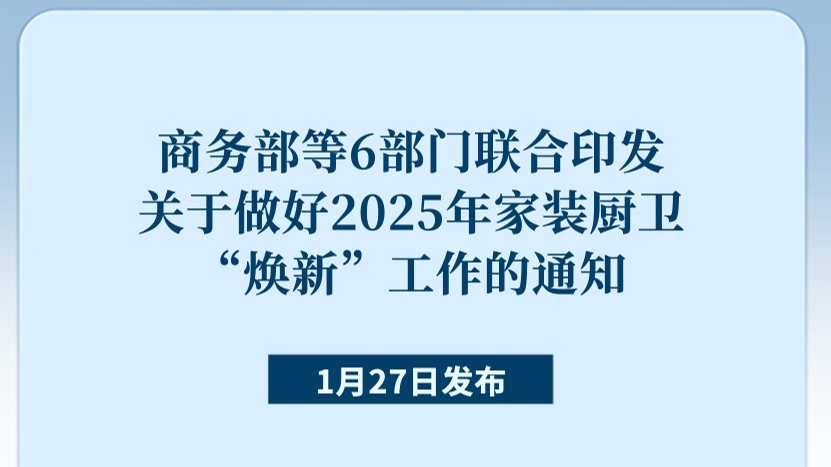 商务部等6部门近日印发关于做好2025年家装厨卫“焕新”工作的通知,1月27日对外发布。通知明确,各地要重点聚焦绿色、智能、适老等方向,支持个人消费者开展旧房装修、厨卫等局部改造、居家适老化改造所用物品和材料购置,结合实际自主确定补贴品类、标准、限额和实施方式。
