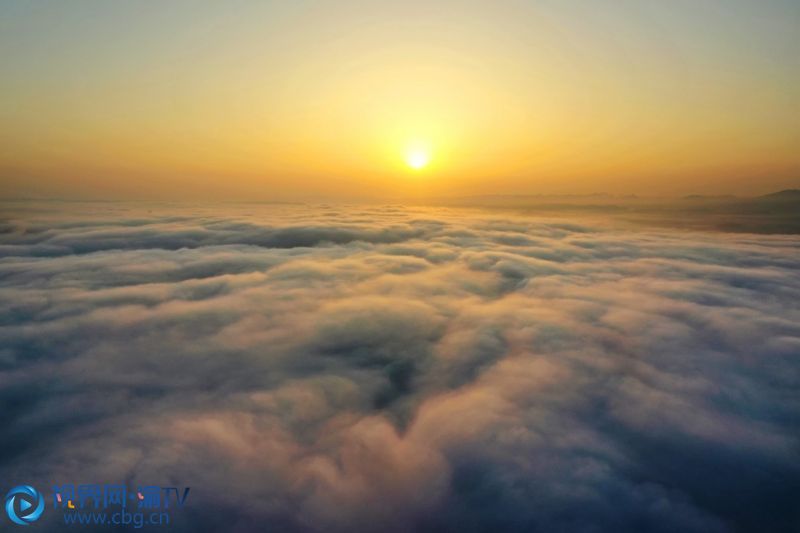 重庆市长寿区长寿湖上空云海翻腾,霞光普照,随着云雾慢慢散去,寿岛时隐时现,美如仙境。