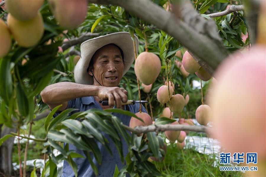 初秋时节,云南省丽江市华坪县种植的晚熟芒果成熟,果农们采摘、装运芒果,一派忙碌景象。