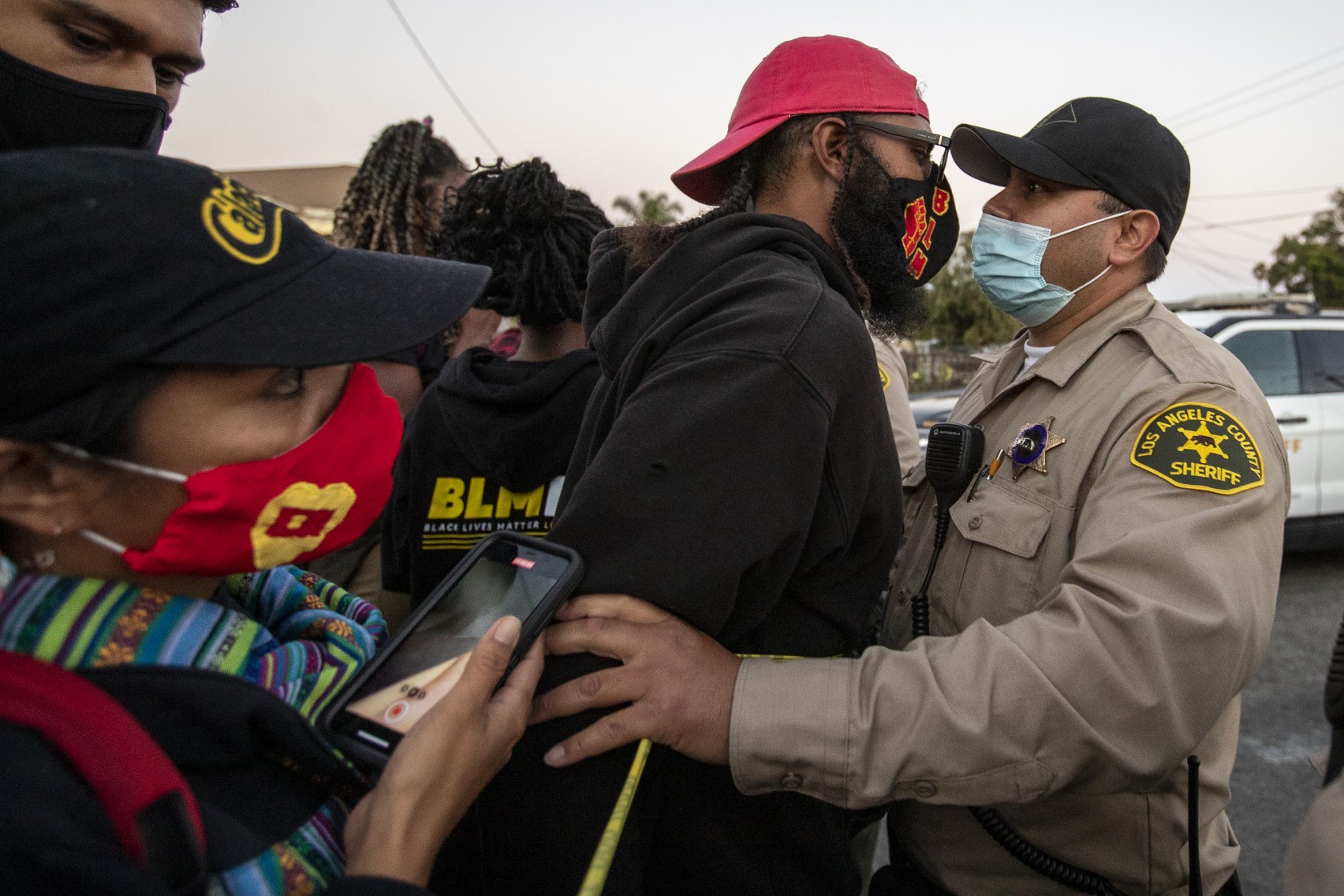 据当地警方消息,南洛杉矶警察局的2名警员在开车时看到一名非裔男子骑车违反交通规则,后上前阻止,而该男子却试图逃跑。