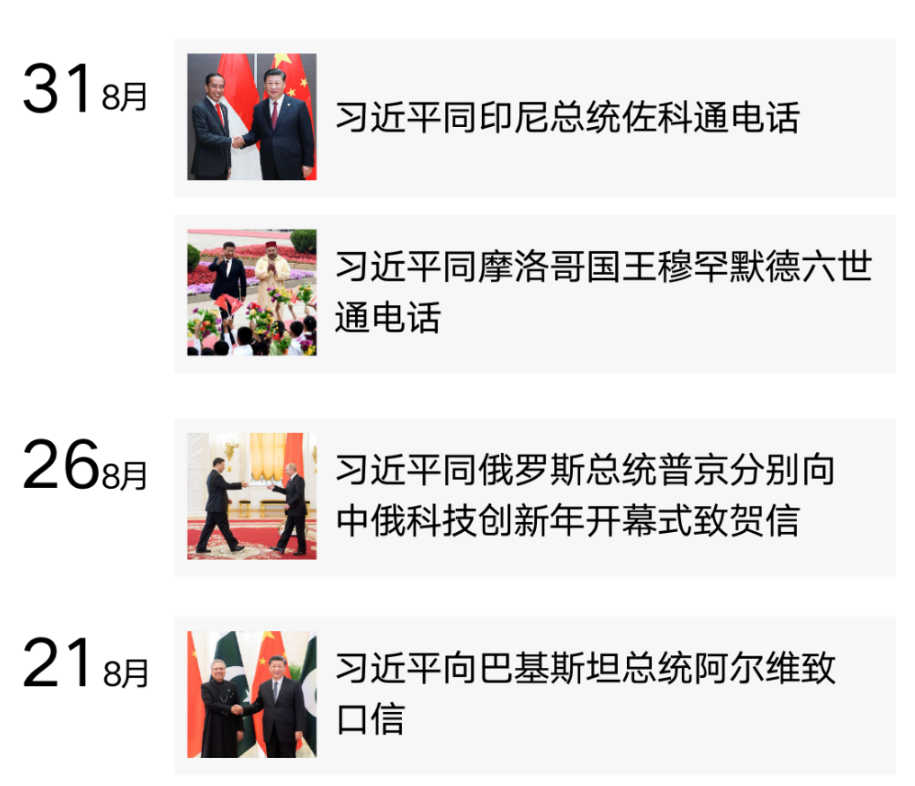刚刚过去的8月,习近平主席继续开展“云外交”,既有致信函,也有通电话——