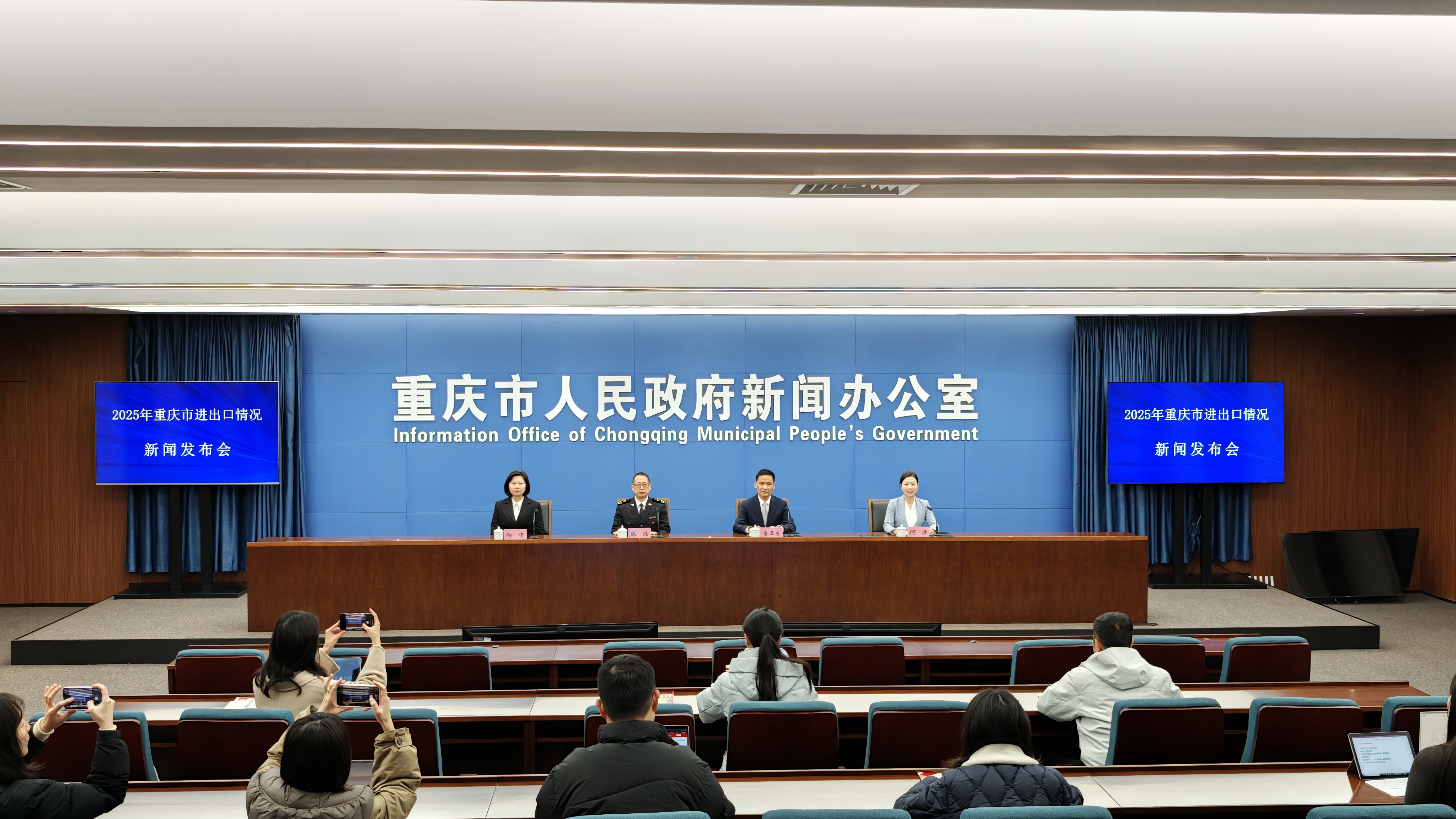 1月26日,重庆市政府新闻办举行2025年重庆市进出口情况新闻发布会,会上,重庆海关副关长、新闻发言人陈海介绍相关情况。