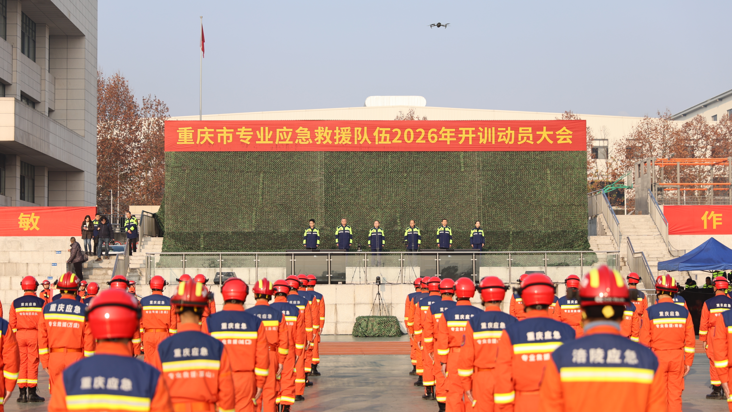 1月8日,“三九”首日,寒意笼罩山城。重庆市专业应急救援队伍2026年开训动员活动在重庆市应急管理局专业应急救援总队举行。全市应急救援力量展开水、陆、空全方位覆盖,市、区县一体化联动的大规模实战化训练,正式打响新一年练兵备战的“发令枪”。