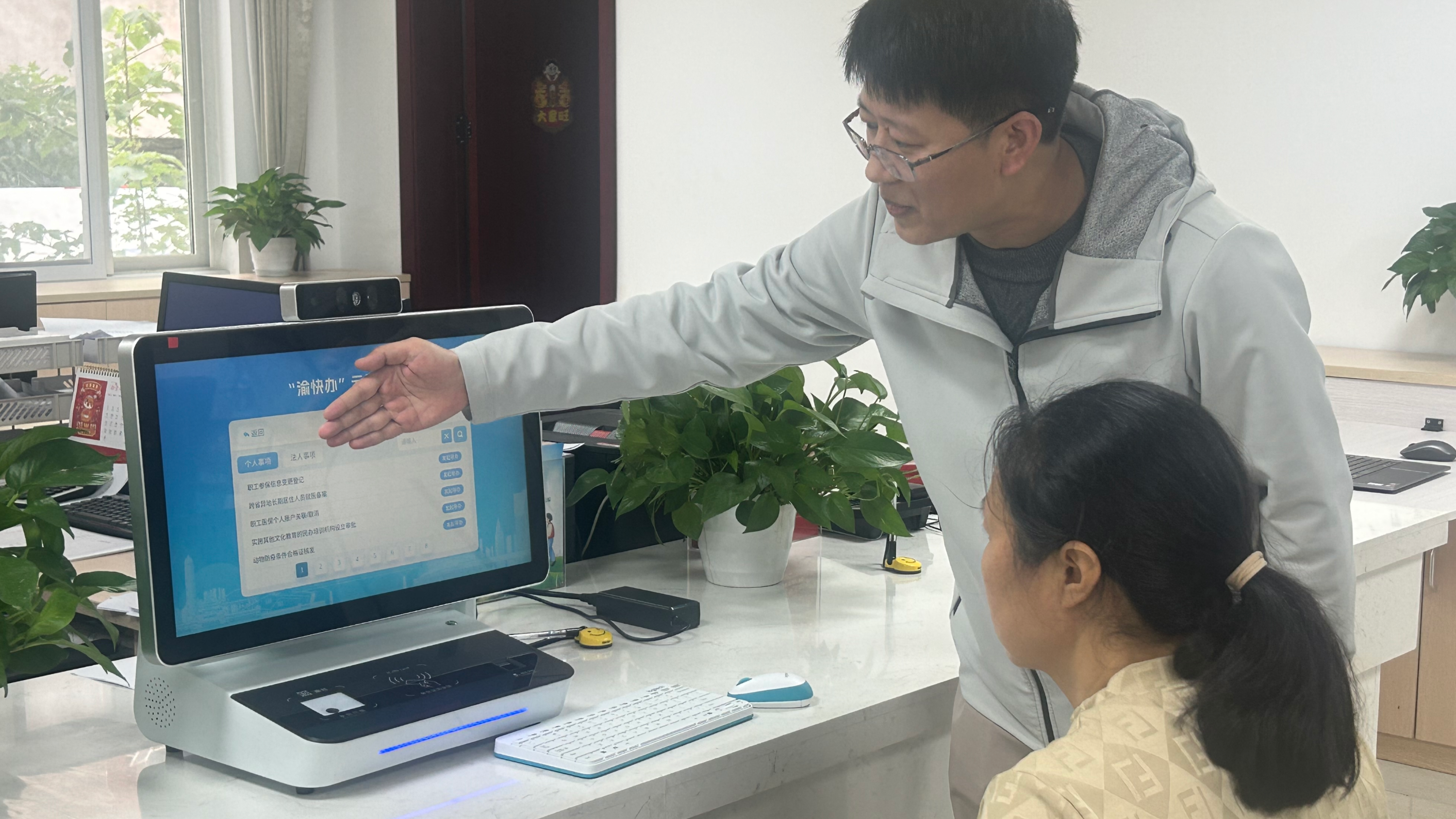 “现在我们进行人脸识别,请正对摄像头核实身份信息。”11月10日,北碚区大盛镇便民服务大厅里,养殖大户包正荣在工作人员的指引下,通过政务服务云综窗设备(以下简称“云综窗”),远程完成了动物防疫条件合格证复核审查的申请。