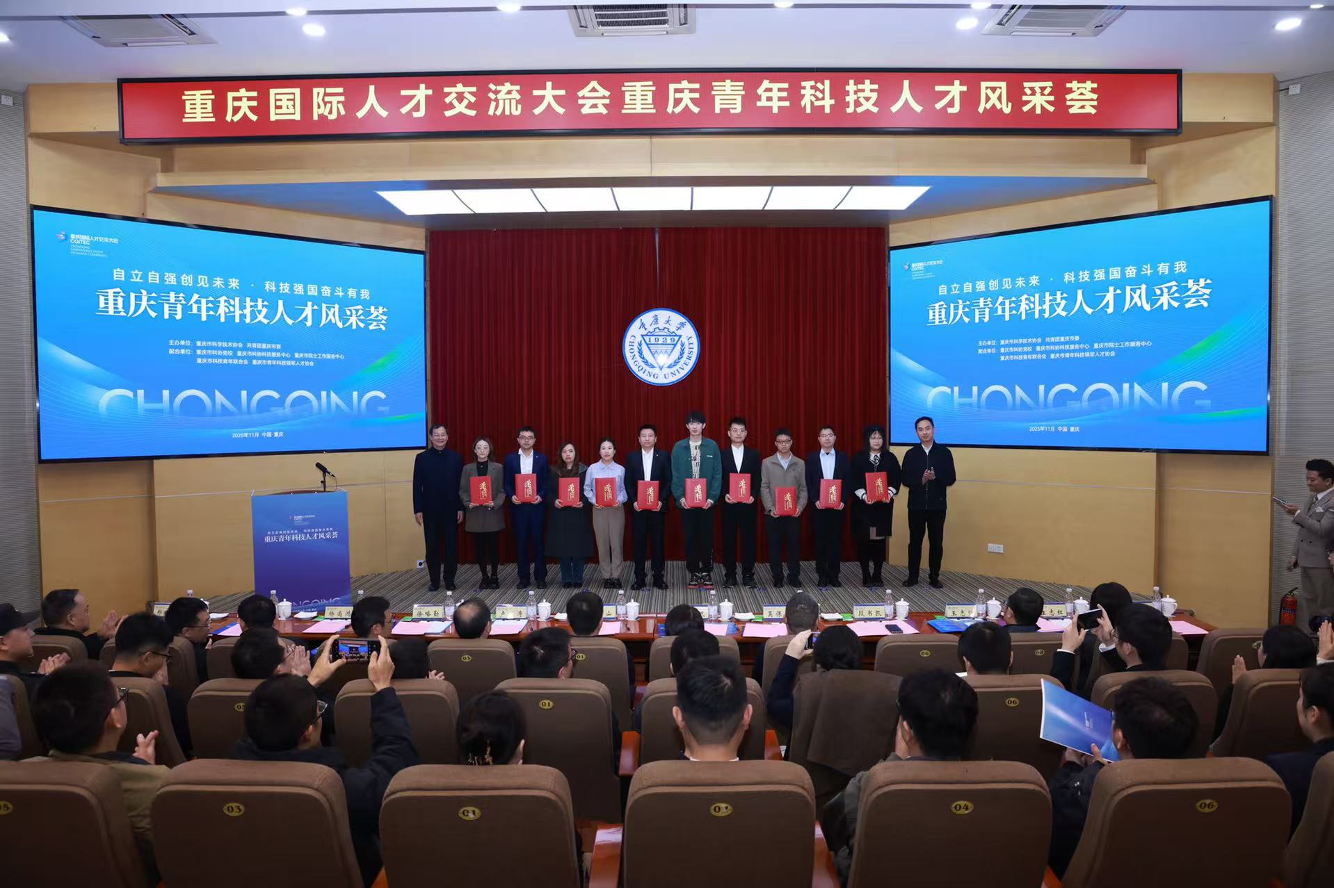 2025年11月11日下午,由重庆市科协、团市委共同主办的重庆国际人才交流大会专场活动——重庆青年科技人才风采荟,在重庆大学A区国际会议厅成功举办。