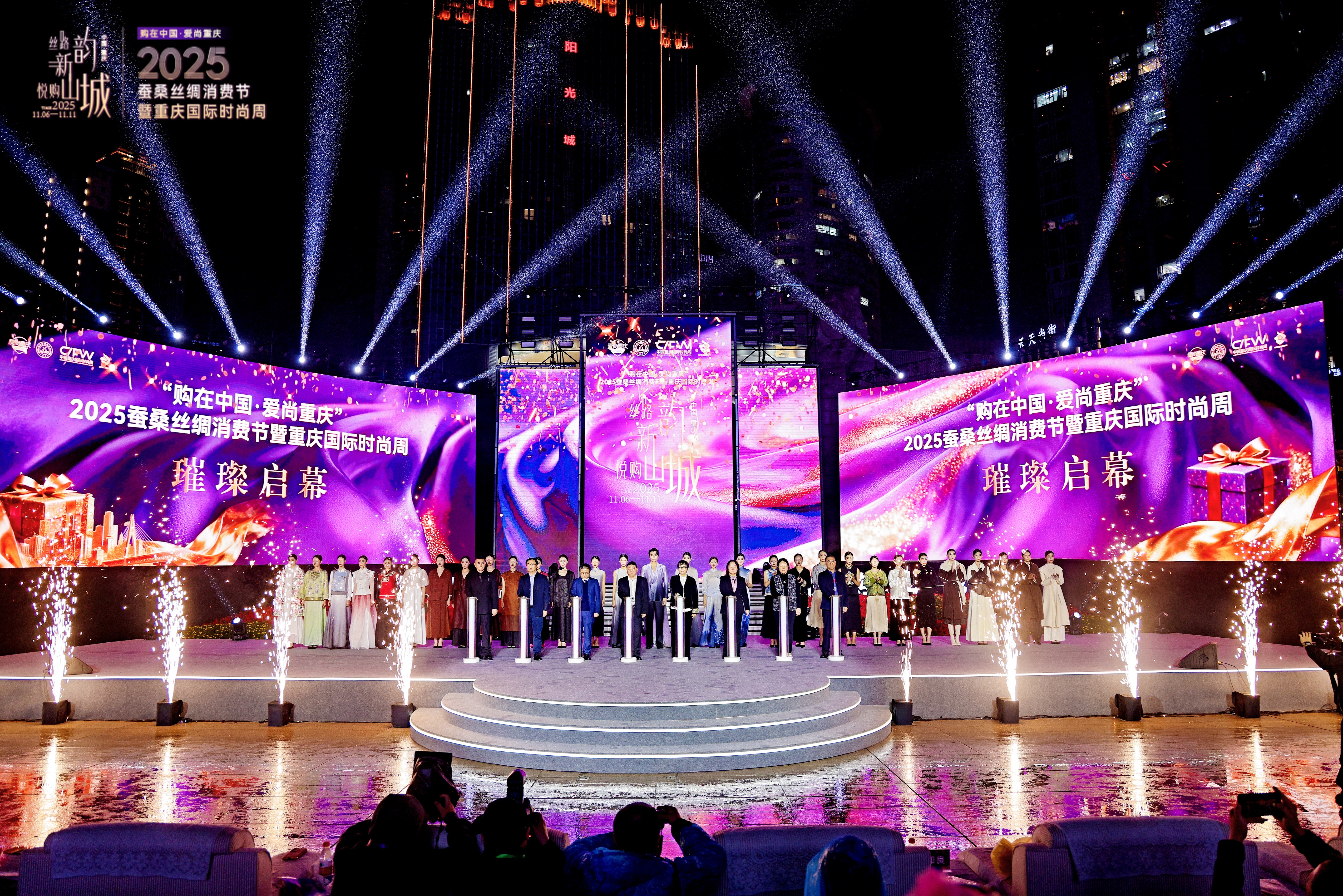 11月6日晚,“购在中国·爱尚重庆”2025蚕桑丝绸消费节暨重庆国际时尚周在观音桥正式拉开精彩序幕。本次活动由中国丝绸协会、重庆市商务委员会等联合主办。开幕式现场,众多顶级的丝绸品牌、时尚品牌代表、非遗传承人等齐聚一堂,共同见证了这一融合文化、时尚与消费的盛事启航。
