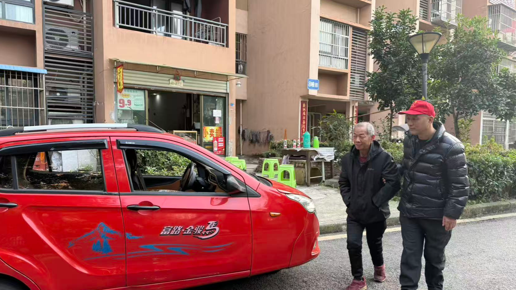 12月11日,冬阳和煦,大渡口区建胜镇的钓鱼嘴公园门口,一辆红色残疾人代步车稳稳停下。残疾人周川笑着下车——这是他与张富明之间心照不宣的约定:一个电话,免费接送。