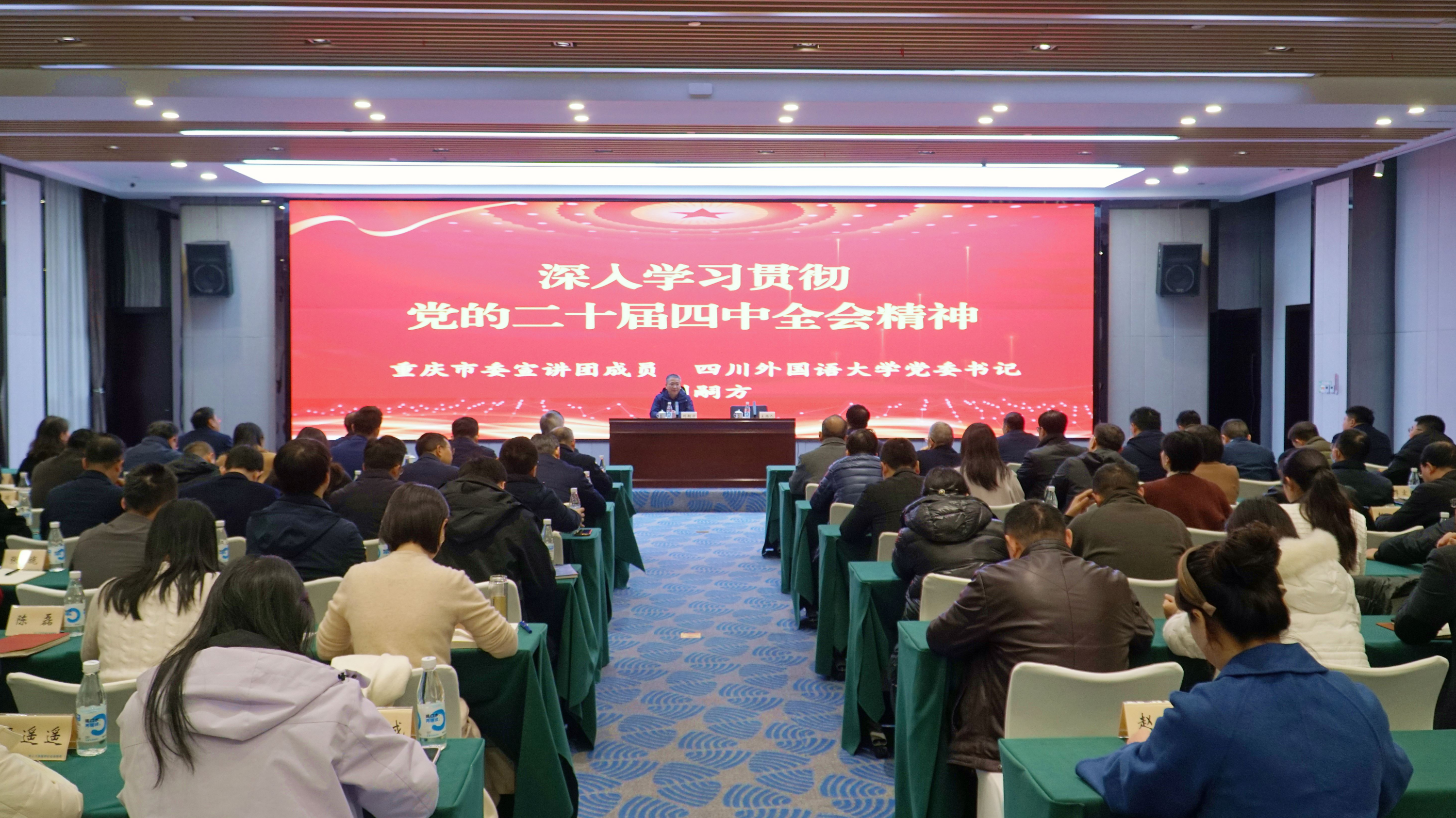 12月17日上午,重庆市人力社保局举行学习贯彻党的二十届四中全会精神市委宣讲团报告会,市委宣讲团成员、四川外国语大学党委书记刘嗣方作宣讲报告。