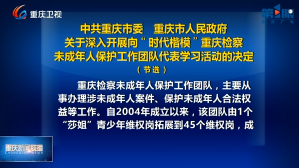 重庆新闻联播丨市委市政府决定深入开展向“时代楷模”重庆检察未成年人保护工作团队代表学习活动
