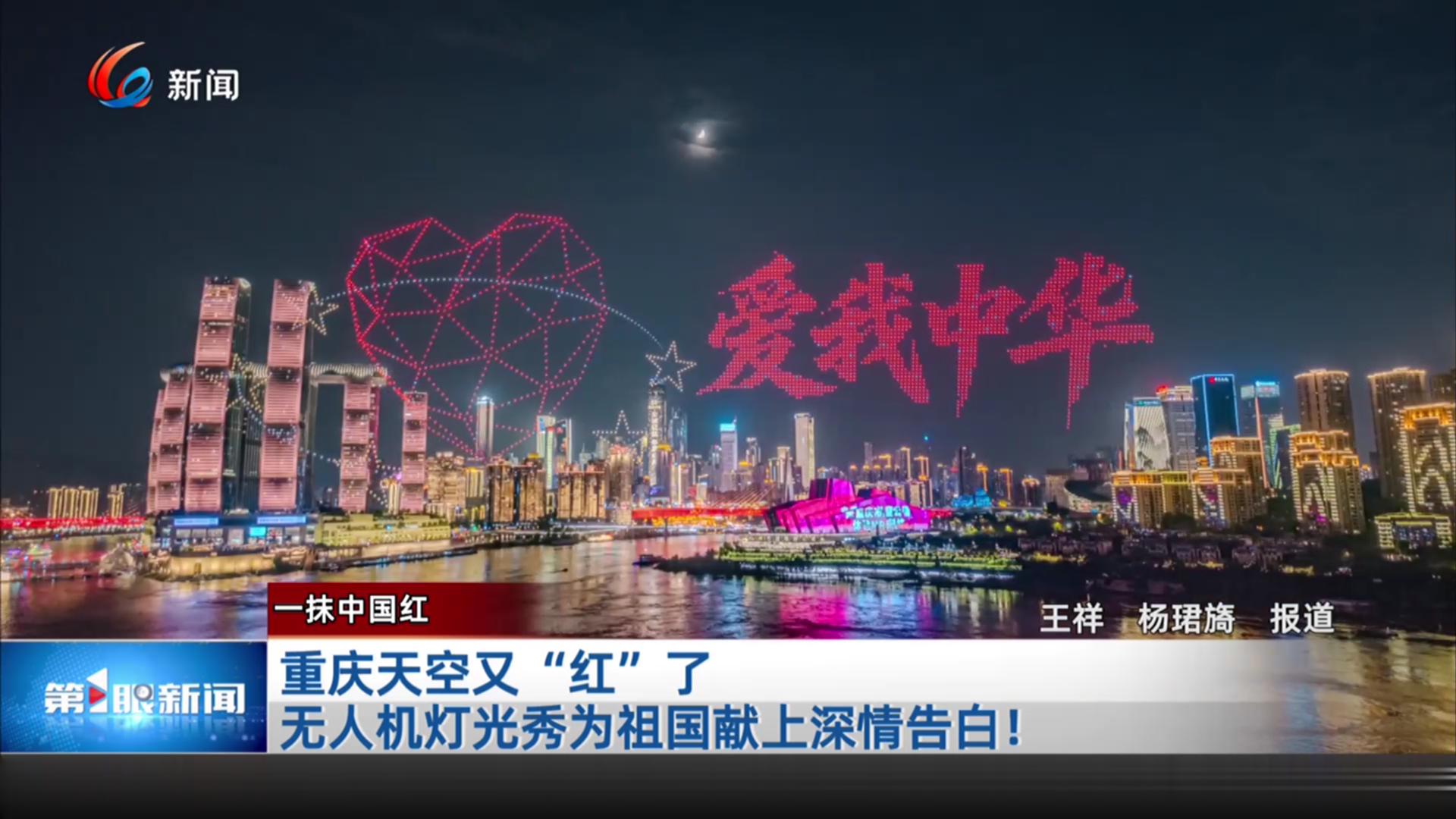 【一抹中国红】重庆天空又“红”了 无人机灯光秀为祖国献上深情告白!