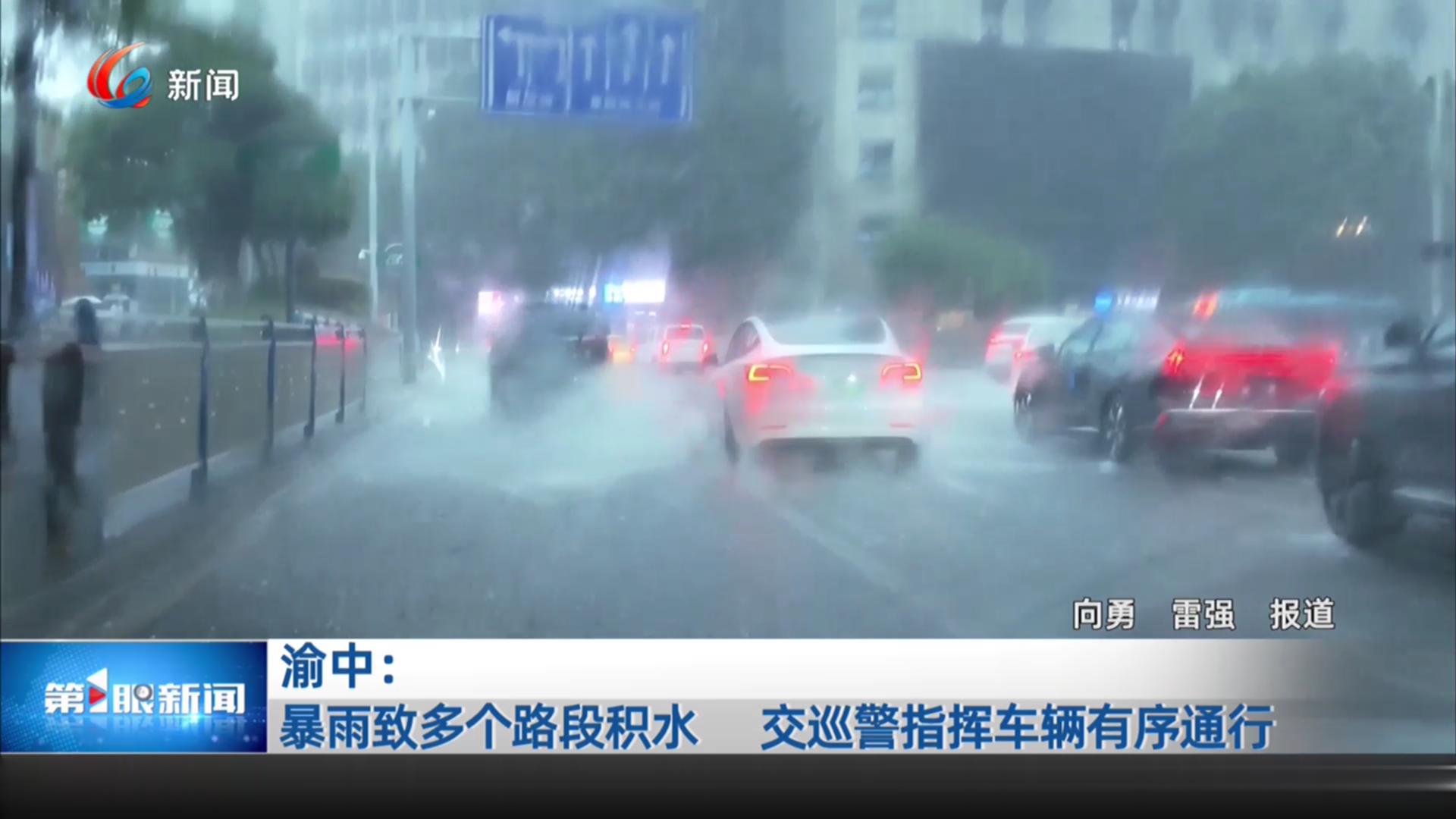 暴雨致多个路段积水 交巡警指挥车辆有序通行