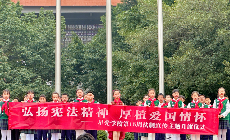 12月4日上午8点半,一场特别的升旗仪式在星光学校操场举行,说它特别是因为学校以第十个国家宪法日为契机,开展了一场沉浸式普法教育活动,弘扬宪法精神,赓续爱国情怀。