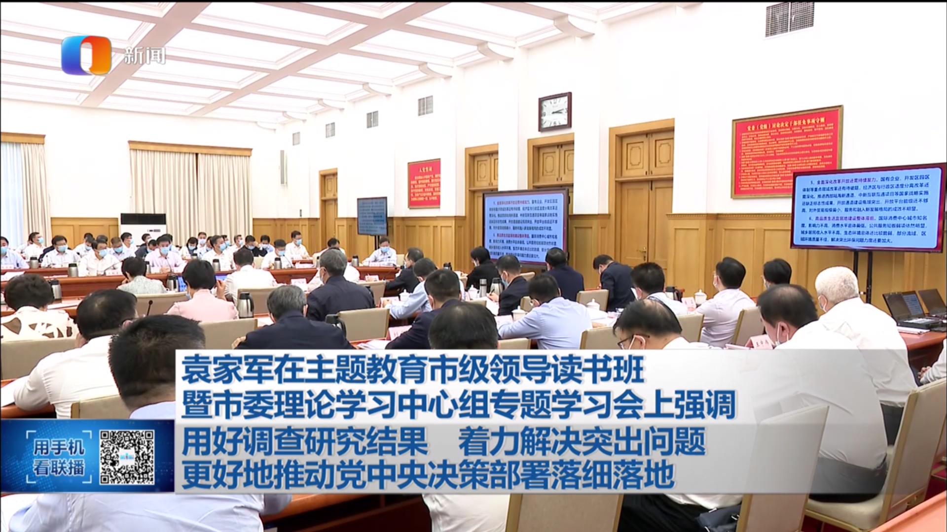 袁家军在主题教育市级领导读书班暨市委理论学习中心组专题学习会上强调 用好调查研究成果 着力解决突出问题 更好地推动党中央决策部署落细落地