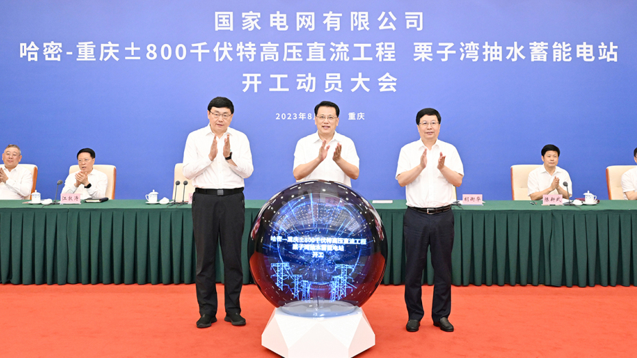 8月8日上午,“疆电入渝”重大工程哈密—重庆±800千伏特高压直流输电工程、栗子湾抽水蓄能电站工程开工建设。新疆维吾尔自治区党委书记马兴瑞、重庆市委书记袁家军分别在新疆和重庆出席开工活动并讲话。新疆维吾尔自治区党委副书记、自治区主席艾尔肯·吐尼亚孜,重庆市委副书记、市长胡衡华出席。