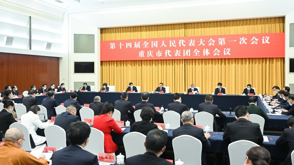 3月5日下午,十四届全国人大一次会议重庆代表团举行全体会议,审议政府工作报告。
