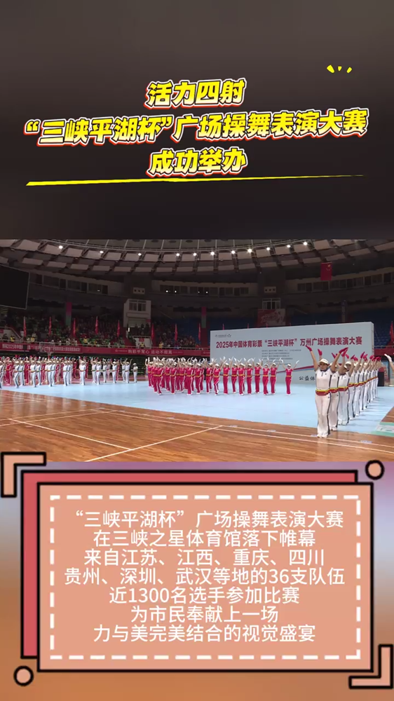 10月25日,2025年“三峡平湖杯”广场操舞表演大赛在万州区三峡之星体育馆举行,来自重庆、四川、贵州、武汉、江苏、深圳等地的36支队伍,近1300名选手参加了本次比赛。