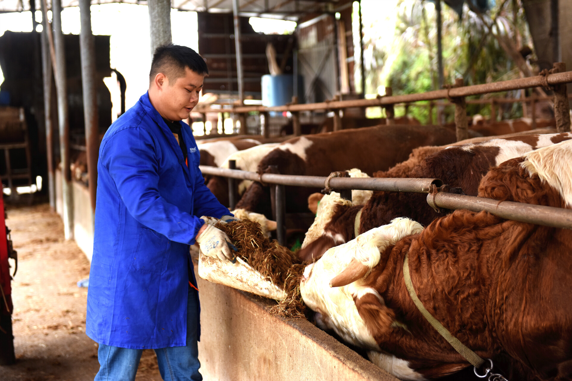 深秋的黎场乡秀才村,寒意渐浓,但在石柱县长信农业开发有限公司的肉牛养殖场内却暖意融融。一头头肉牛膘肥体壮,“哞哞”声此起彼伏,养殖场负责人高飞淋正熟练地给肉牛投喂自制草料,身影在栏舍间忙碌穿梭。