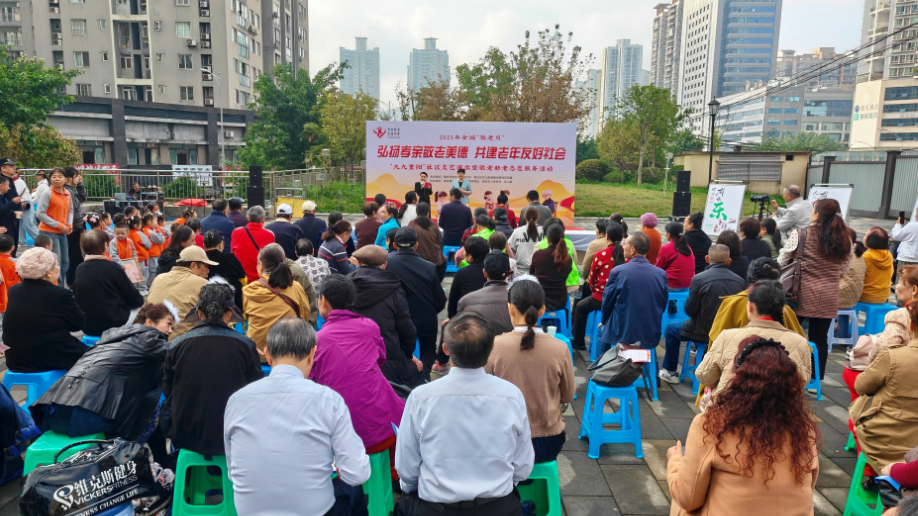 重阳节到来之际,重庆市渝北区龙山街道旗龙路社区与重庆市老年大学今天在廉洁文化广场联合举办“弘扬孝亲敬老美德,共建老年友好社会”汇报活动,展示双方近年来校社共建的丰硕成果。