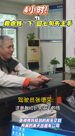 近日,驾驶员张德荣运送来万州看病的乘客到万州北站,乘客下车时将5200元现金遗失在后座,张德荣发现后立马交到公司,只用了四个小时,这些钱完璧归赵回到乘客手里。