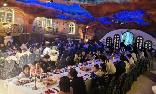 春节即将到来,不少市民已经开始张罗各种聚餐,在重庆涪陵美心红酒小镇,令人耳目一新的红酒长桌宴、沉浸式火锅、遛达柴火鸡、烤全羊四大特色集体宴紧扣“文旅+消费”融合趋势,以“美食+场景+温情”的多元组合,在升腾的烟火气中激活冬季文旅消费市场,让八方游客在舌尖盛宴中欢度新春。