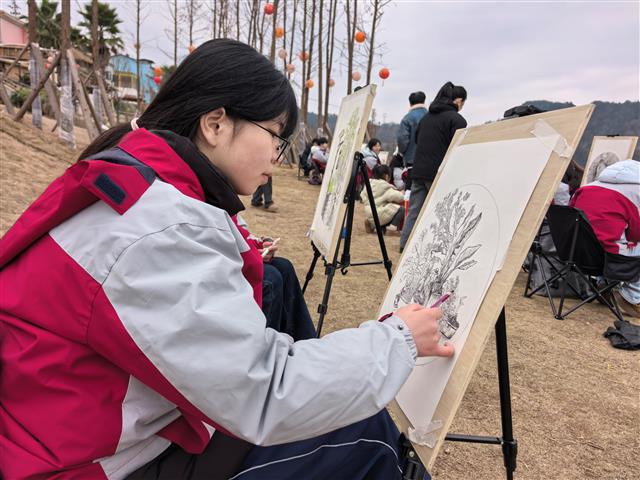 课堂搬进山水间 艺绘桥头迎新春