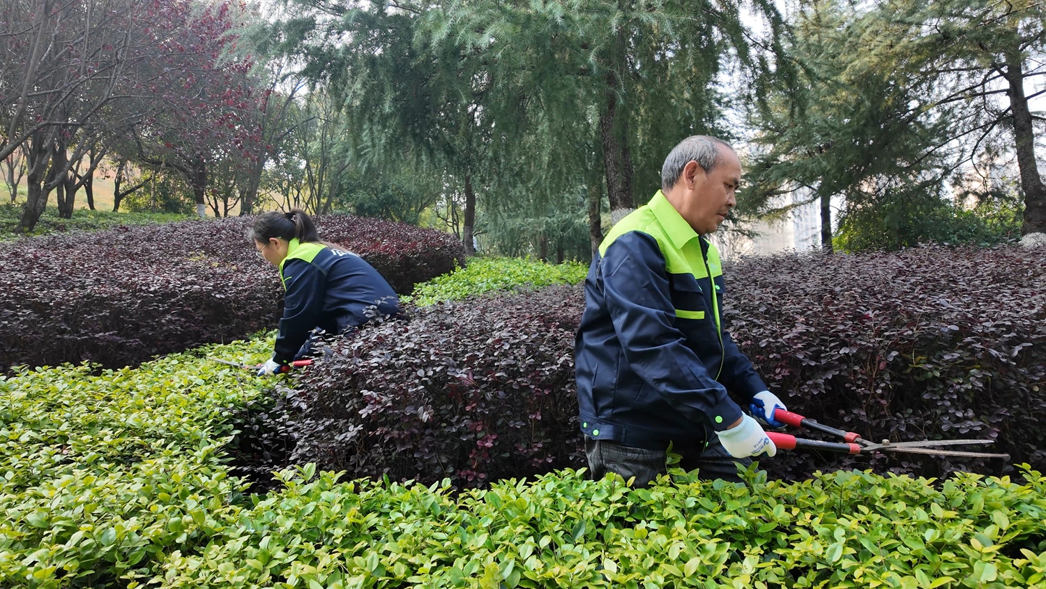 大足:公园冬季养护忙 “换装”蓄力待春归