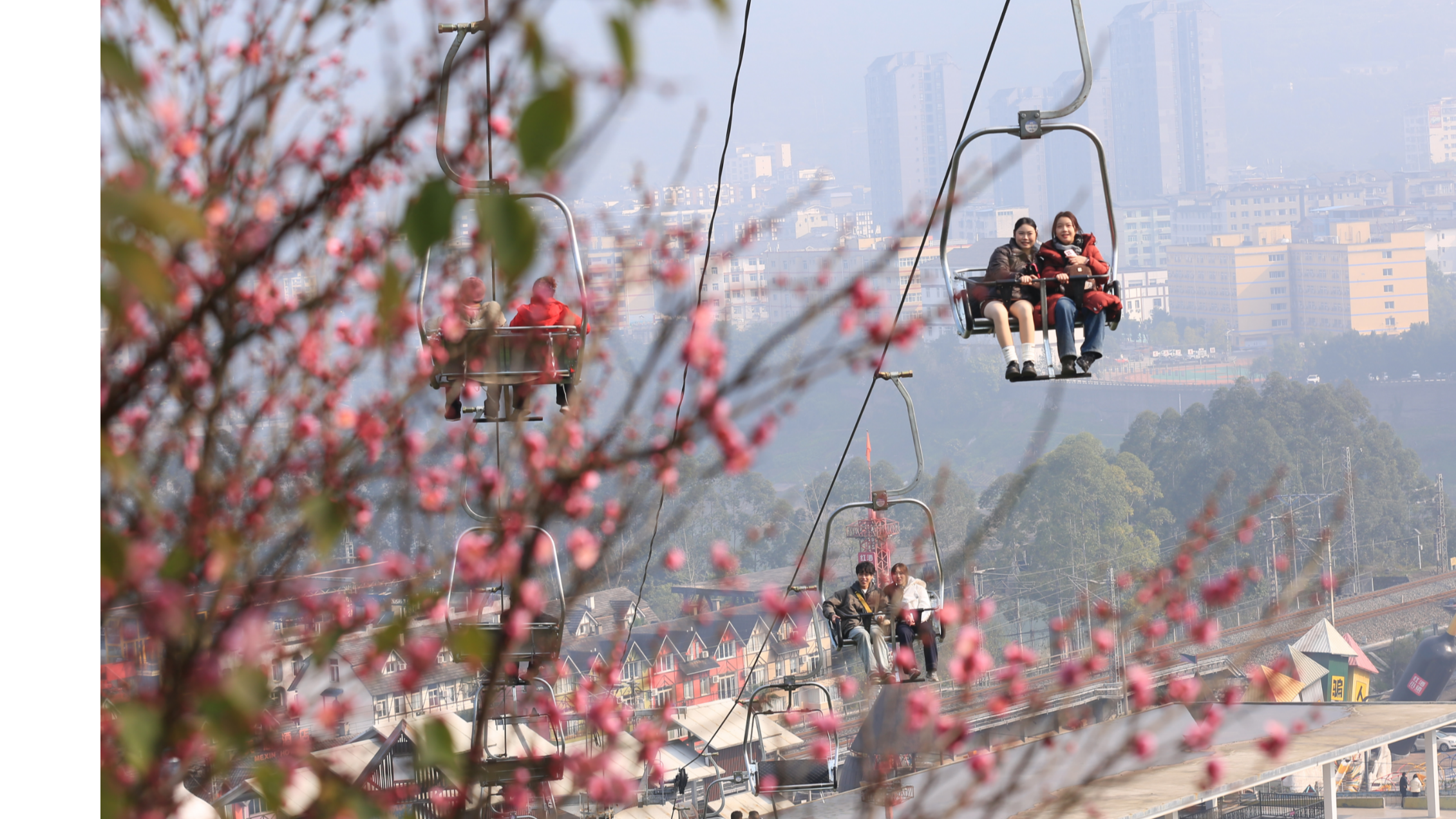 重庆涪陵:晴暖三九梅香溢 坐着索道去赏花