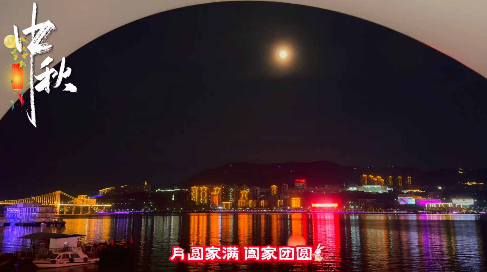 一江碧水映月辉,两岸花影共人醉。中秋之夜,重庆万州长江之畔,灯火阑珊,人来人往,初升的圆月与火红的三角梅构成了一幅“花好月圆”的动人画卷。