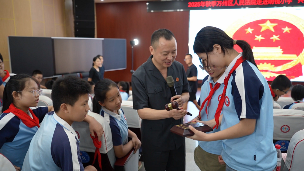 新学期伊始,万州区人民法院的组织工作人员走进万州区明镜小学,为同学们带来了一堂生动而深刻的“网络安全第一课”,提升小学生的网络素养和防骗意识,同时通过近距离接触司法器物,在他们心中播下法治的种子。