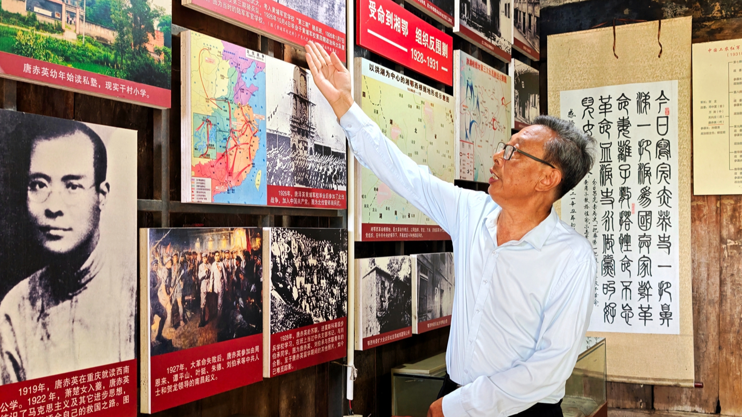 在大足区石马镇,69岁的退休教师荣贵德有一个特殊的身份——唐赤英故居志愿解说员。13年来,他风雨无阻地为参观者讲述革命故事,累计讲解超过1200场,吸引了8万余人次聆听这位大足籍红军将领的英勇事迹。