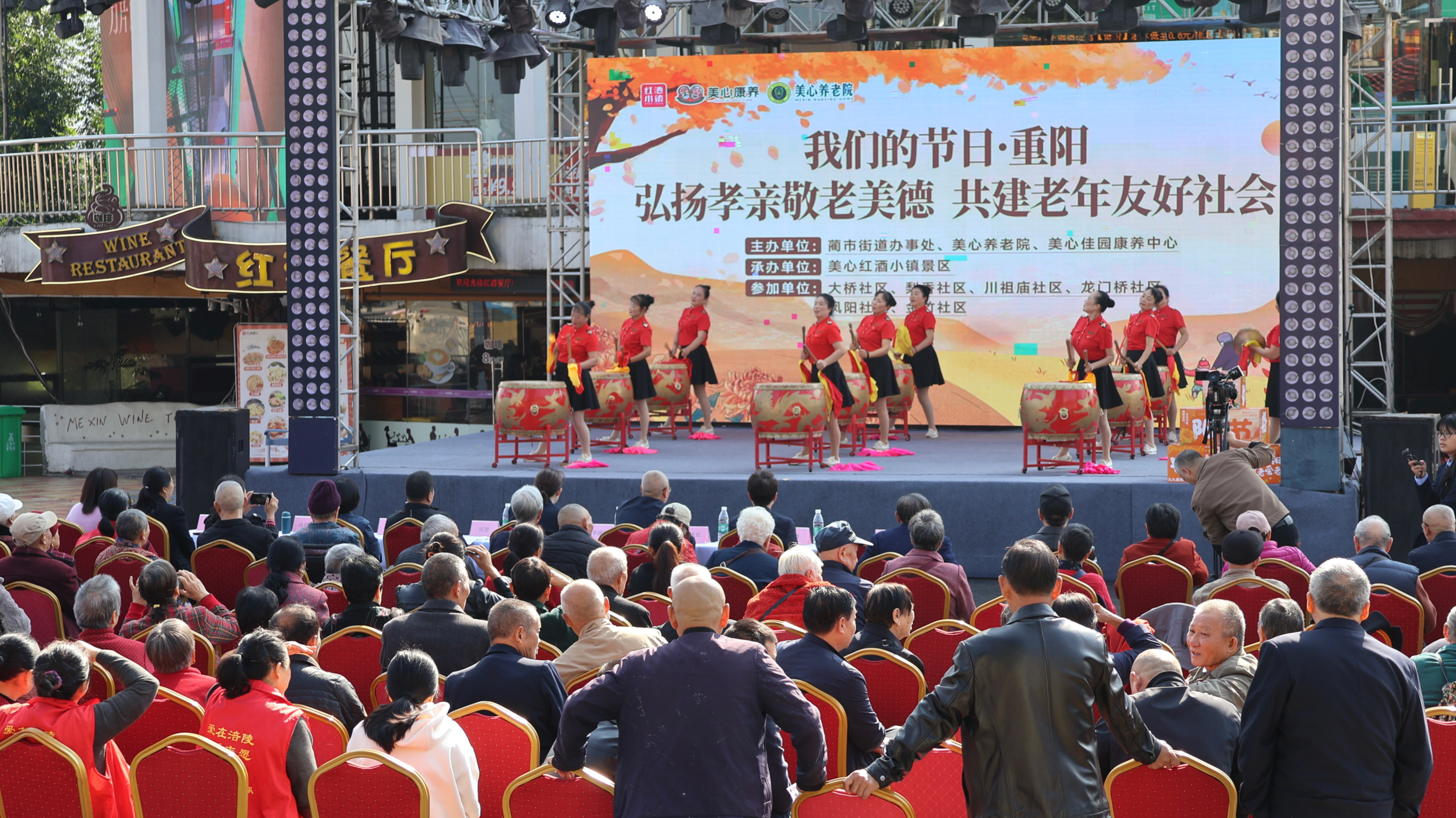 重阳敬老,情暖金秋。10月28日,在重阳节来临之际,重庆涪陵美心红酒小镇景区一片欢声笑语,美心养老院、美心佳园康养中心联合蔺市街道办事处共同举办的重阳节敬老活动在和煦的秋日暖阳中拉开序幕。来自涪陵蔺市美心养老院与重庆南岸区海峡路美心佳园康养中心的上百位老人欢聚一堂,共度重阳佳节。一场跨越城乡的聚会,不仅让老人们感受到了浓厚的节日氛围,更生动展示了当前正在探索的“城乡旅居互动式体验养老”新模式。