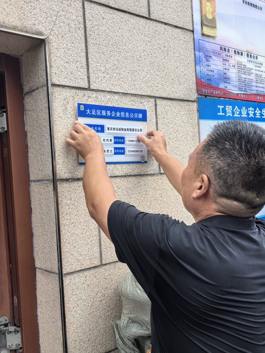 既当“店小二”,又做“贴心人”。服务企业,如何从一句口号变为让企业能真切感受到的春风?近日,大足区经济信息委的工作人员们顶着暑热,跑园区、进厂区,干的不是寻常检查,而是为一家家企业挂上一块块特殊的“门牌”——“大足区服务企业信息公示牌”。这块牌子上,不仅亮出了服务专员和监督员的姓名、电话和职责,更亮出了区政府“足够懂你、有呼必应”的承诺和决心。
