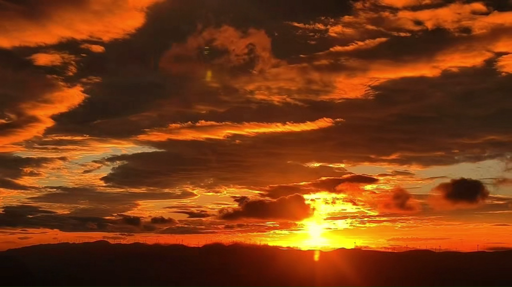 位于渝鄂交界的七曜山日出景色壮美。清晨,太阳徐徐升起,朝云变幻色彩,与山峦、风车相互映衬,宛如梦幻仙境。