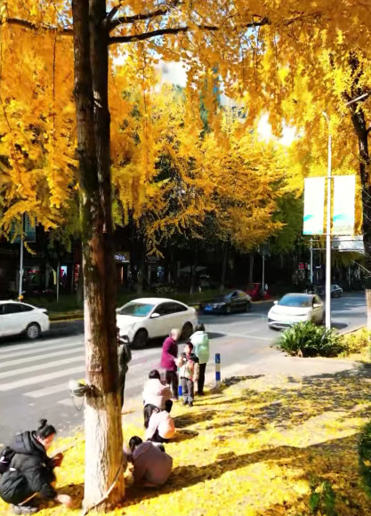 万州区天城大道的银杏黄了,给整条道路增添了温暖的色彩。