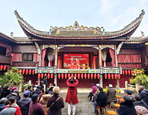 近日,“梨园迎春・年味盈香”2026醇美雍溪里新春嘉年华在大足区雍溪镇热闹启幕。作为此次活动的核心亮点,“梨园献艺・小年戏宴”川剧展演当天在雍溪古戏楼精彩开唱,四川省内江市威远川剧团与重庆市大足区戏剧协会联袂献艺,用经典的唱腔、精湛的表演,为市民游客奉上了一场地道的川剧盛宴,古镇内外年味浓郁、戏韵悠长。