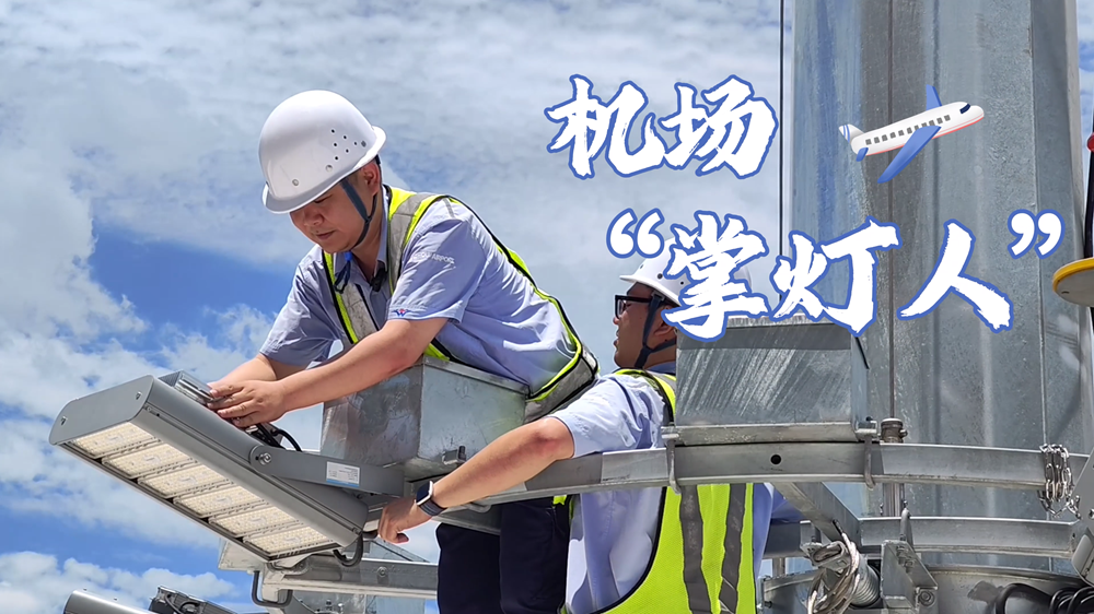 机场灯光众多,事关飞机起降安全。万州机场员工冒着酷暑每天三次巡检维护灯光,确保持续稳定运行 。
