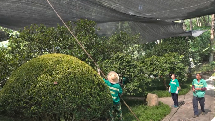座落在万州西山公园内的古茶园,始建于1925年,是全国栽植茶花树规模最大的城市公园之一。公园内的古茶树有5000多株,其中,树龄在100年以上的茶树111株。但近期,当地迎来了持续的连晴高温天气,这也对惧怕高温干旱的古茶树造成了很大威胁。针对这一情况,当地城市管理部门派出了园林工人,为100多棵古茶树搭建了1000多平方米的遮阳网。在古茶树的根部,工人们还安装了排洪盲沟和土壤墒情监测系统,对古茶树进行全方位保护。