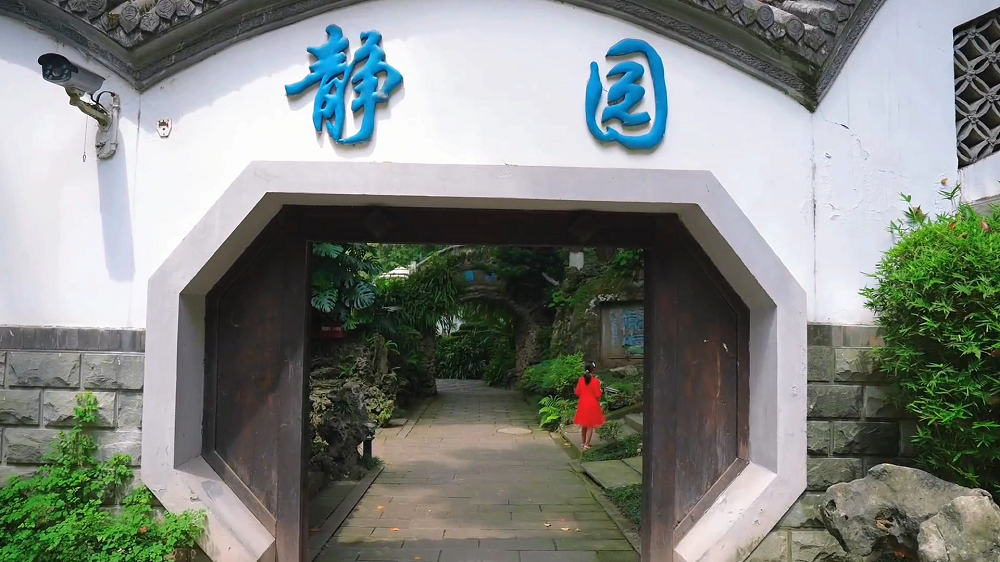 静园位于重庆市万州区西山公园西北角, 始建于1930年,由当时驻守在四川万县的军阀杨森为其母亲静养而修建,具有苏州园林风格,是一座小巧精致的中式园林,内部设计有“四水归堂”式的建筑,颇具江南水乡韵味,白顶红柱的风雨曲廊、画布灯笼、座座小亭,让人仿佛置身于江南旧梦。