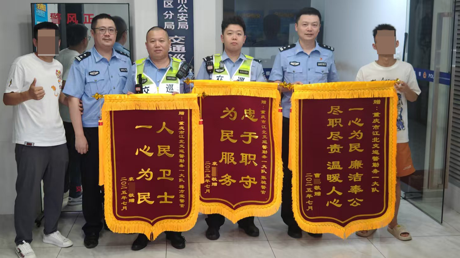 7月10日下午,江北区公安分局交巡警支队石马河勤务大队收到了一份特殊的“礼物”——三面锦旗。一面印有“为民服务 忠于职守”,一面写着“一心为民 人民卫士”,还有一面写着“尽职尽责 温暖人心 一心为民 廉洁奉公”。这三面锦旗,承载着一个令人动容的故事,讲述着江北公安与时间赛跑,护送病危儿童转院就医的故事。