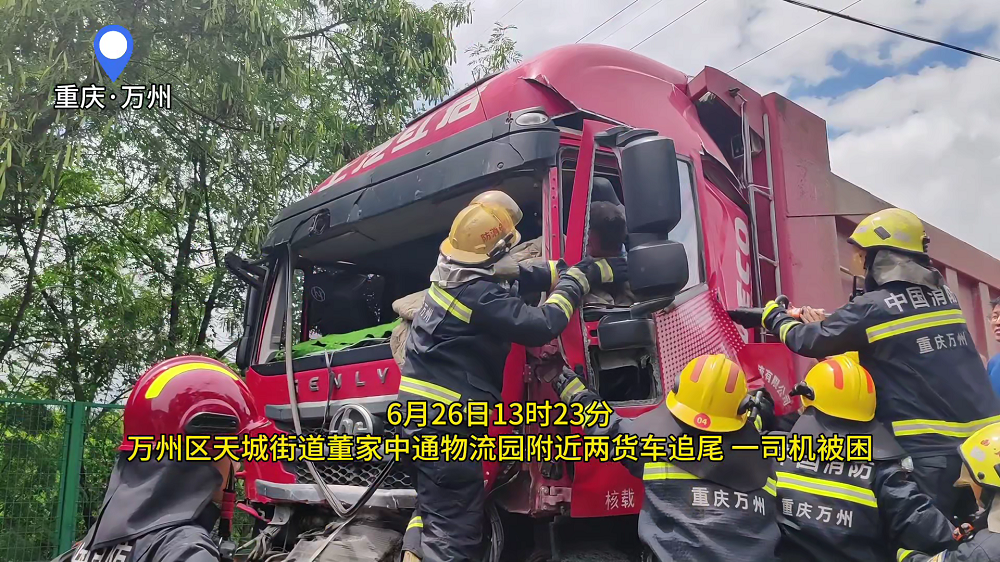 重庆万州:两货车追尾一人被困 消防紧急救援成功解救